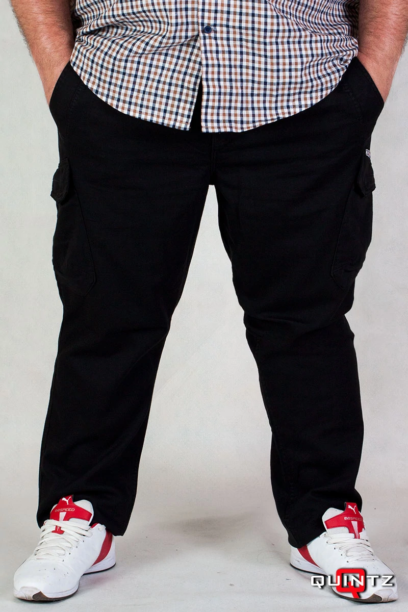 A legújabb 2019-es alapanyagból készült cargo nadrág a nagyméretű férfiak számára. Vékony anyagát tekintve kifejezetten a tavaszi-nyári időjárásban ajánljuk, de a nem fázós férfiak ősszel is viselhetik. Az extra méretű férfiak egyik legkedveltebb viselete a melegítő nadrág, de az a legtöbb esetben csak otthoni viseletként szolgál. Kiváló alternatívája ez a gumis derekú nadrág, ami kényelmében teljesen megfelel egy melegítő nadrágnak, de mégis utcai viseletként is megállja a helyét. Pólóval vagy inggel nem betűrve viselve, akár egy klasszikus nadrág, még slicce is van. A körgumis derék rész kedvez azoknak a férfiaknak is, akiknek gyakran változik a súlyuk és sokszor két méret között ingadoznak. Oldalzsebeiben még több értéket magunkkal vihetünk, amit ráadásul tépőzárral védhetünk, hogy ne szóródjon el. Választhatunk a jól bevált fekete vagy a nyáriasabb világos keki szín között.
